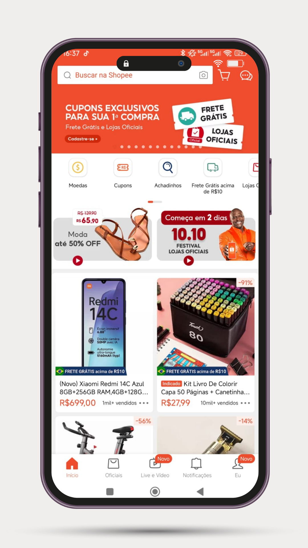 Shopee: Atraia um público engajado com preços competitivos, ideal para produtos de alto giro e grande volume de vendas.